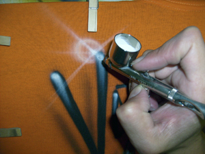 Pobíhám po redakci a chystal jsem pár dalších emailů do Německa když.....tu jsem našel pár šablon na trička. Popisovat nic dnes nebudeme, všichni jistě ví, jak se na tričko dá malovat. Buďto použiji šablonu, nebo budu malovat od ruky či kombinovaně. Ale náhodou jsem našel použití materiálu, kterému se říká pellon. Třeba se pletu, ale ....A stále jse nepochopil podle návod na použití, protože pokud budu mít na tomto podkladu nápisy a ty budu nechávat přes pistoli prosakovat na další materiál, tak to nemůže mít žáduocí efekt z retuše, žádné ostré obrysy a přesnost. Pro amatérské použití prosím, jako praktické využití v naší tvorbě, to nevím. Snad mi prodejce odpustí kritiku, ale posuďte sami....