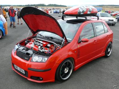 Na světě nejsou krásnější příběhy než ty s dobrým koncem. V tuningovém světě to platí také. Když mi koncem letošního června Libor Olič alias Olin předával umaštěný (možná i to je slabé slovo) kryt motoru, pětilitrový soudek od piva, který už něco pamatoval a nově koupenou rakev na střechu své Fabie a po pár dnech jetou expanzní nádobku a vyřezaný kryt na baterii na kterém, po přebroušení, bylo odhaleno 6 různých barev, tak ani ve snu by mě nenapadlo kam až tento příběh může zajít.Na světě nejsou krásnější příběhy než ty s dobrým koncem. V tuningovém světě to platí také.