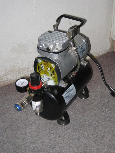 Tento kompresor používá stále více našich čtenářů. Již pro lákavou cenu, která je okolo dnes již okolo 3 tis korun. Orlík je jednopístový bezolejový kompresor pro airbrush stříkání. Je vybaven regulátorem pro odvod kondenzátu a nastavením výstupního tlaku. Ale o parametrech tohoto zařízení si psát nebudeme. Láďa dostal nápad na malou úpravu kompresoru.
