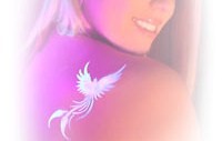 Nejenže tetování záři pod UV lampami ale přes den zůstává realisticky černé. Ještě nikdo nikdy nevyvinul toto složení a jsme hrdí, že vám ho můžeme představit. UV doplněk je přesně stejný jako standardní airbrush tetování, vypadá realisticky, necítíte jej na kůži a může být aplikován na jakýkoliv vzor.