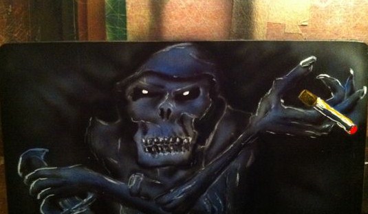 Původně jsem o tom vůbec nechtěl psát, ale pak jsem si řekl, že by se podobná záležitost mohla stát komukoliv, kdo doma začíná nebo experimentuje s airbrushem. Dostal jsem malou prácičku, ne vůbec náročnou, kamarád chtěl vyrobit dvě víčka a tak jsem mu je v polních podmínkách vytvořil. Ale pak mě napadlo, že když jsou to víčka od krabice s tabákem, který není moc zdravý, tak mu tam vytvořím pistolkou svého oblíbence kostlivce Jacka, kterého jsem kdysi stvořil ve svých prvních komiksových stories. Mělo to být překvapení....A tak jsem si celý postup nafotil a popsal. Co jsem k tomu všechno potřeboval?