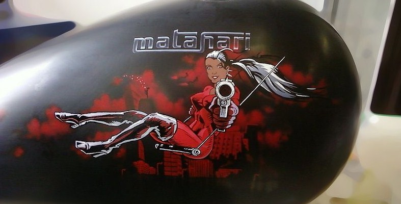 Zdravím všechny čtenáře a lidi, kteří se zajímají o airbrush. Posílám jeden postup práce na nádrži. Je to airbrush na motiv skupiny Matahari pro kamaráda Pavla kterému se tato skupina líbí. Finální foto je zatím bez laku a jen nádrž . Po laku dodám fota celé motork. Fotky jsou označené od 1 do 29, aby se to dobře ukládalo a nahrávalo na web. Fotky nejsou moc epes nevím prostě se mi to nedaří fotit ostře hezky nasvětlené asi budu muset vyměnit foťák nebo ruce. (také mi to nejde fotit a ve skutečnosti je to lepší.pozn.red.) Komentáře k fotkám budou také očíslované 1 -29 pro lepší přiřazení.